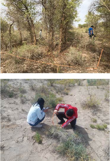 項目組一行,先是乘車(chē),然后步行,沿著(zhù)克孜勒蘇河沿岸,尋找河岸零星分布的胡楊林。開(kāi)展胡楊林生態(tài)調查工作,了解胡楊林生長(cháng)情況,周邊生境情況,分別作了胡楊林和周邊灌木叢的生態(tài)樣方調查。