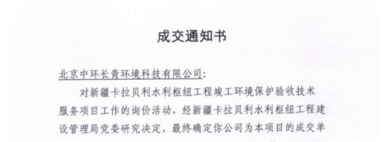近日,北京中環(huán)長(cháng)青環(huán)境科技有限公司成功中標新疆卡拉貝利水利樞紐工程竣工環(huán)境保護驗收技術(shù)服務(wù)項目。在疫情防控的特殊時(shí)期,公司經(jīng)營(yíng)團隊、高管團隊通力合作,幫助建設單位優(yōu)化技術(shù)解決方案,通過(guò)最優(yōu)的性?xún)r(jià)比技術(shù)服務(wù)方案中標,并為公司在生態(tài)類(lèi)環(huán)保驗收項目開(kāi)啟了新的篇章。
